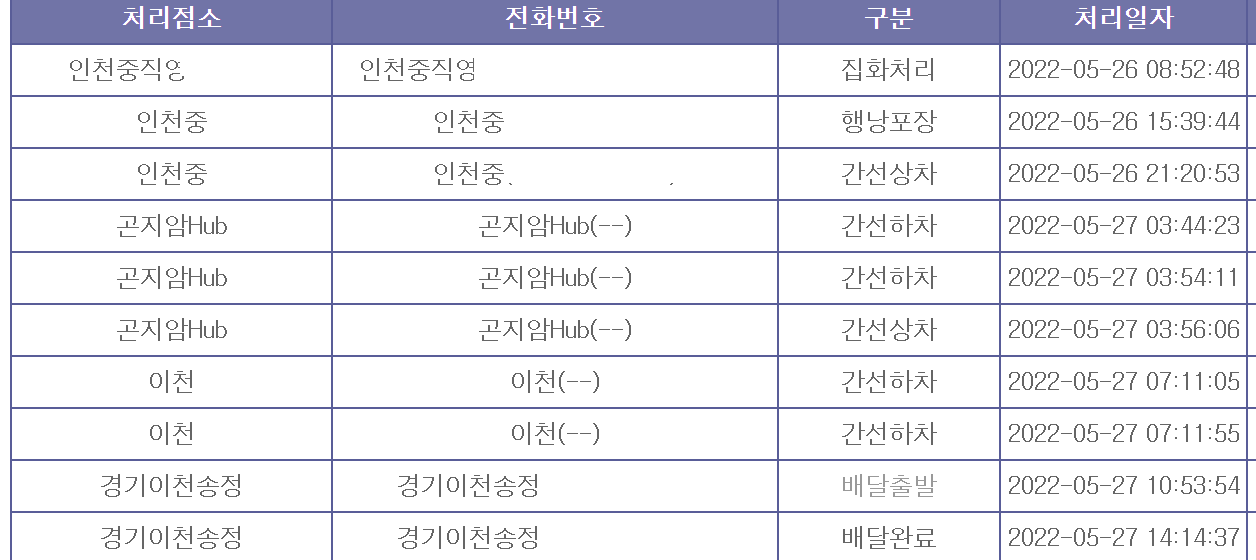 배대지에서 보낸 55로 시작하는 송장은 배대지에서 한국까지 8일 + 국내 2일