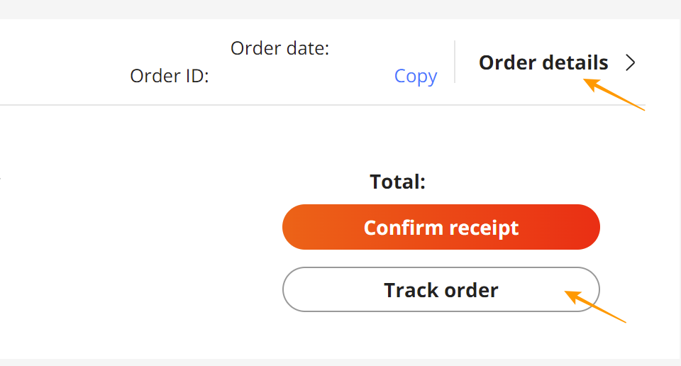 선택 후 주문한 제품 옆에 Order details를 누르면